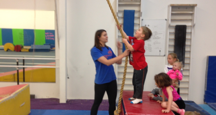 Taking a turn on the rope swing.