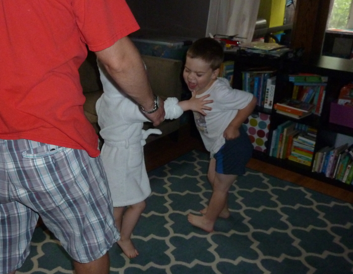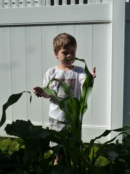 This week I had some fun. On Monday I went to the food shelf with Mommy and helped pack boxes. I liked being a good helper. On Tuesday, I stayed home with Daddy while Mommy went to her internship. We worked on the garden, played with ice, and played around the house.