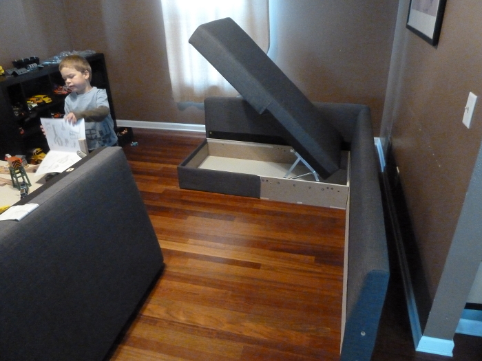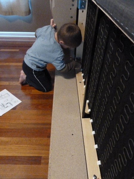 Mommy went to work Tuesday morning, so Daddy and I put her couch together.