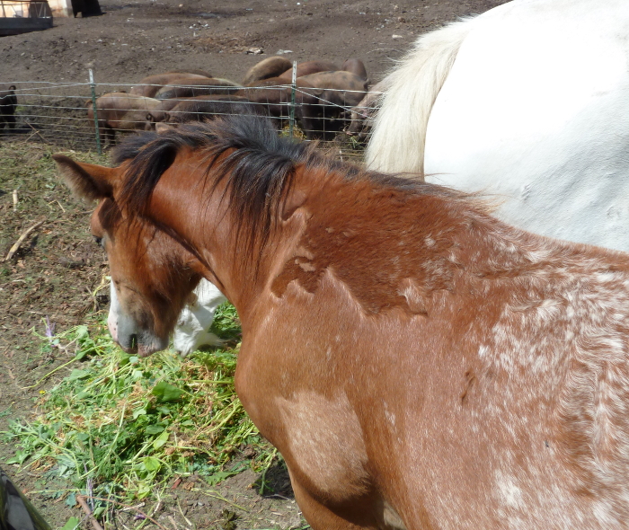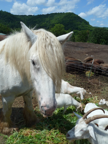 The horse that tried to kiss me while I was looking at the goats (she stuck her head into the car through the window).