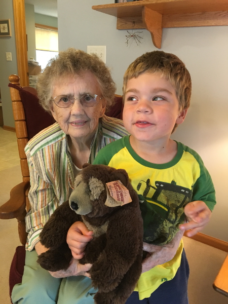 And I persuaded Great-grandma Muriel to give me this bear. His name is Lucas.