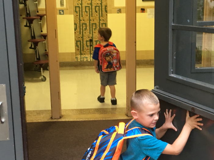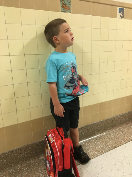 Wednesday was my real first day of kindergarten, because Mommy and Daddy left me there. I had a hard time saying goodbye. I didn't even get to go out on the playground because it was raining.