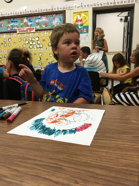Tuesday was orientation day at school. Mom and Dad got to come with, and then I got to go home. Grandpa Al and Grandma Wynne came to stay with me because Mommy and Daddy had to be on campus all day.