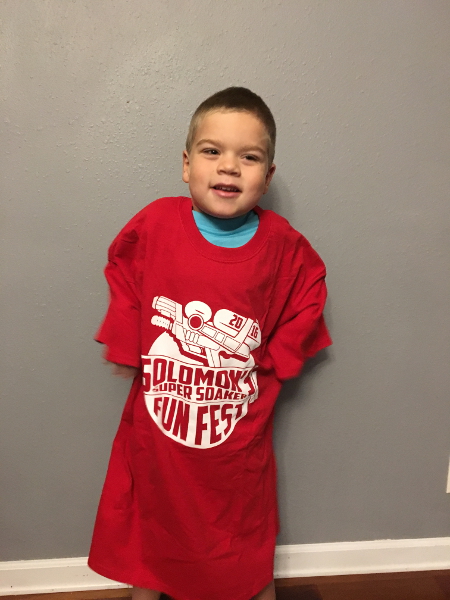 In a big shirt. Mommy and Daddy think they are going to remember to take a picture of me in this shirt on the first day of school every year until I graduate.
