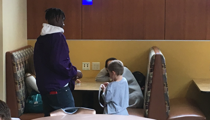 Friday afternoon Lilei came over to play with me. We spent some time in the LEGO room. And we met daddy at the pizza place for supper.