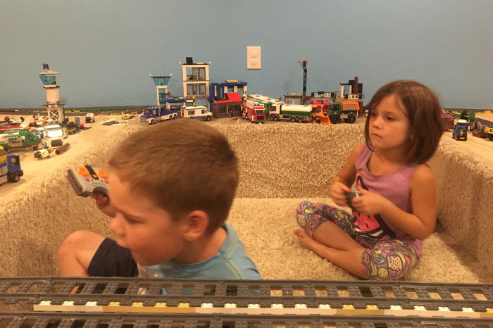 Playing trains with Lilei while Mommy and Ambrosia talk upstairs.