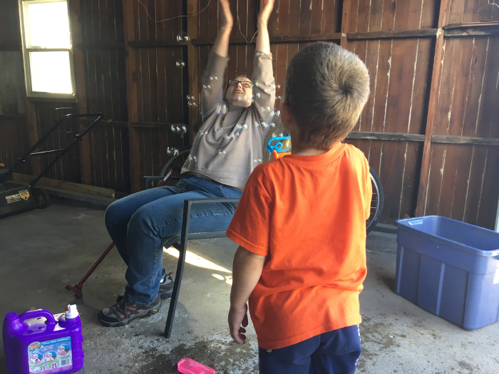 On Sunday, Mommy and Auntie Kara left early, and then Daddy and I did some work around the house. Grandma and Grandpa came to visit again - but mostly Grandpa worked in the garage while Grandma spent time with me. And we went to the farm again to drop off even more garden stuff.