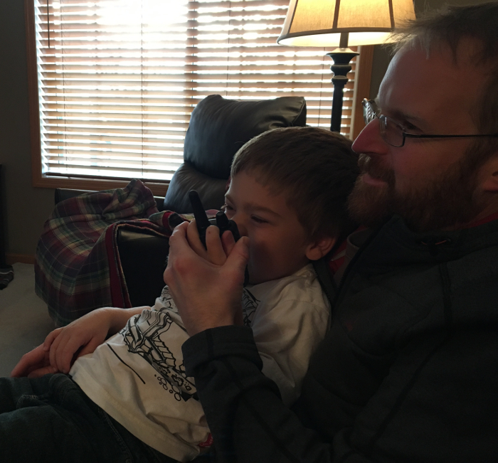 Me and Daddy playing Mt. St. Helens Rangers with Grandpa Kevin on the two-way radios.