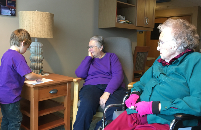 We went to do some visiting with GG, Grandpa Kevin, and Auntie Kara, Grandpa Al and Grandma Wynne, Great-grandma Dorothy, David, and Diane.