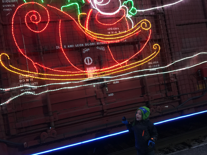 The Holiday Train came to town, so Daddy and I went to see it. Mommy said it was too cold. She may have been right, since Daddy's phone agreed and stopped working before he was done taking pictures. We saw Lilei and Oliver and their mommies at the train. And we got to stand right next to the music - well, Daddy did. I was sitting on his shoulders.