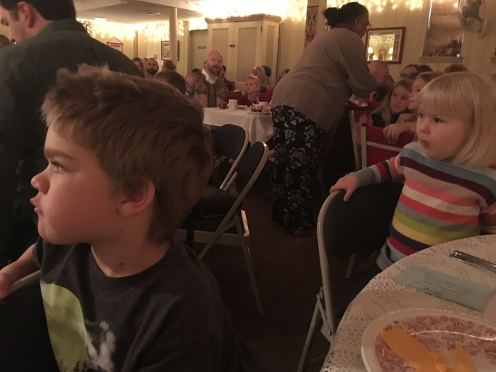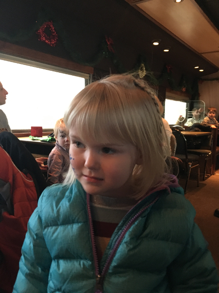 Waiting for Santa. (I had Daddy take my face paint off.)