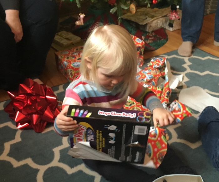 Friday we drove up to Freya's house to celebrate Christmas! The weather was much nicer than the freezing rain we drove in the last time we went up. And when we got there, we had pizza! Just like Daddy's birthday! Yay!