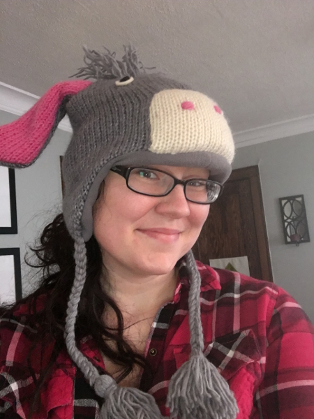 Mommy with her new hat she bought at the Christmas market - it looks like Eeyore!