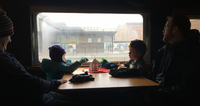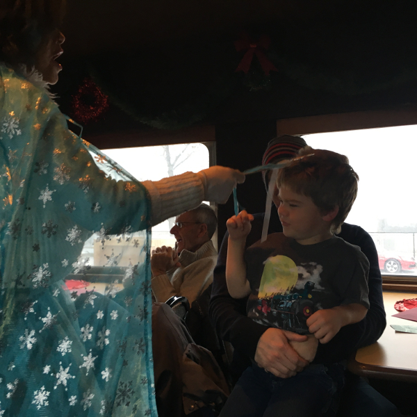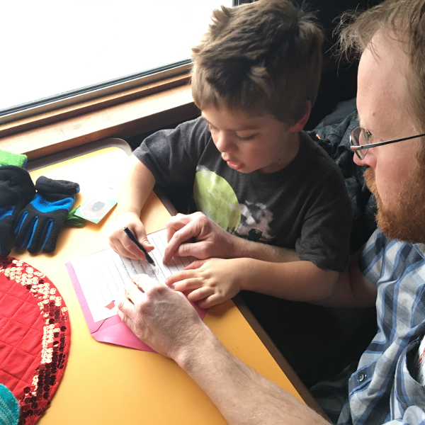 Santa Claus was going to come on the train to talk to us, so I wrote him another letter. I wanted to ask Santa to give Donald the Golden Eagle a new wing, to fix the one that broke when he got hit by a car, so he can fly with the other eagles again. Daddy helped me get all that on the little piece of paper.