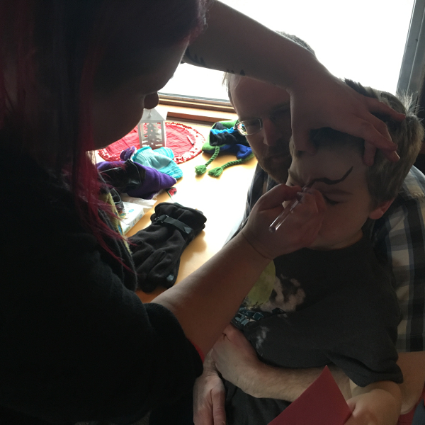 Getting my face painted like Rudolph the Red-nosed Reindeer.
