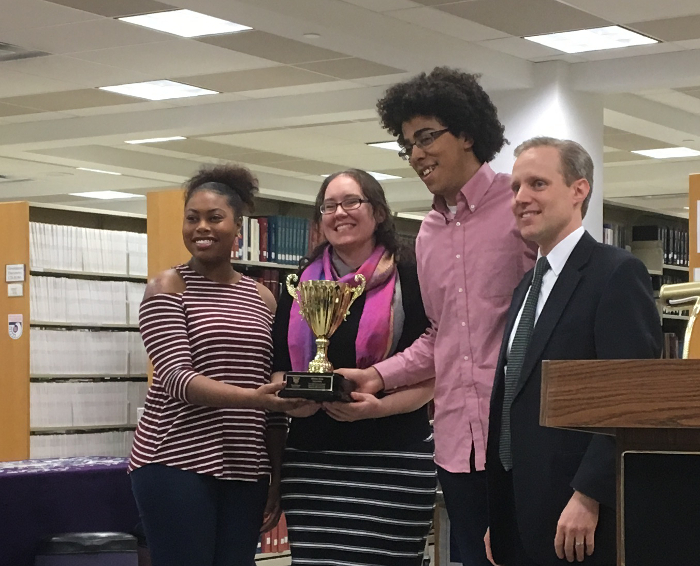 Mommy and the other students with the award and the Secretary of State.