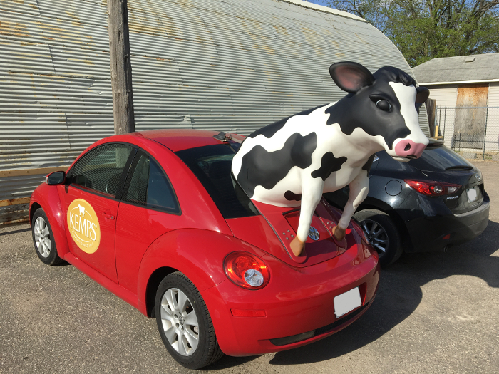 After I was done looking at the trucks, Daddy and I went to visit Great-grandma Dorothy, and then I got to ride with Grandpa Al out to one farm. When we brought the milk back to the plant, we saw a cow car.