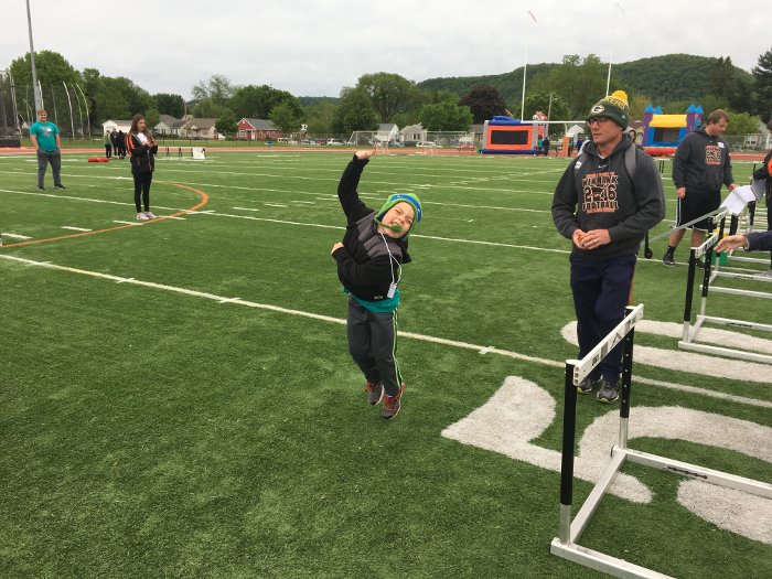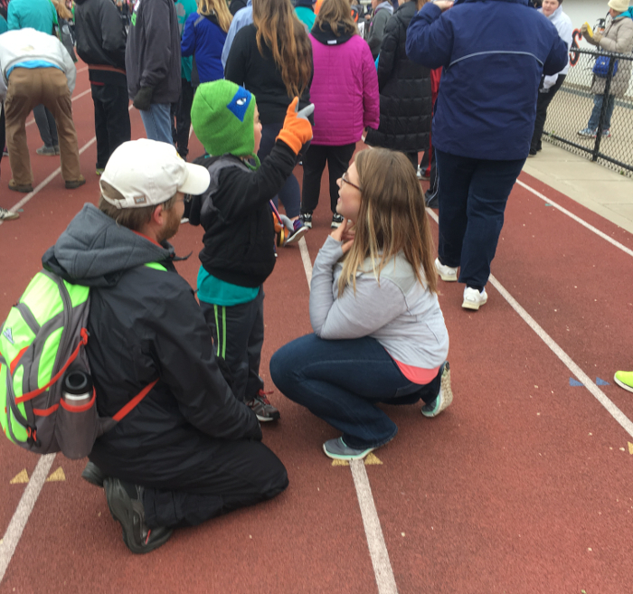 This week I had some new kinds of fun. Friday was a special track meet for all of the little schools in the area. I was a competitor in the softball throw, the running long jump, the ball kick, and the 50-meter dash. I fell during my race, but I got back up and finished. I saw a lot of my friends there, including Brandon, my swimming teacher, and Kelly from when I first started school at the children's center. Auntie Kara and Freya came down to cheer me on with Mom and Dad. And after it was over we went out for pizza!