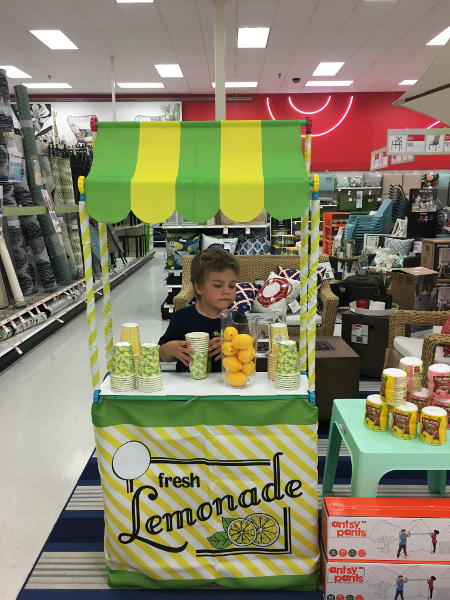 Playing with a lemonade stand at Target.