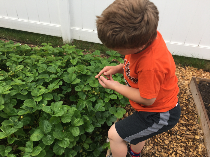 Picking our first strawberries of the year.