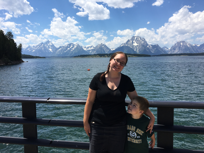Tuesday morning we got up and headed to Grand Teton National Park. We spent some time at the visitor's center, Jenny Lake, the Jackson Lake dam, and somewhere by Colter Bay we saw a black bear. Daddy got a picture of it, but it was from too far away to look like much. You had to be there.