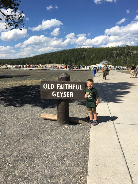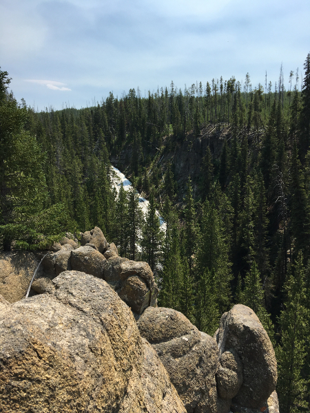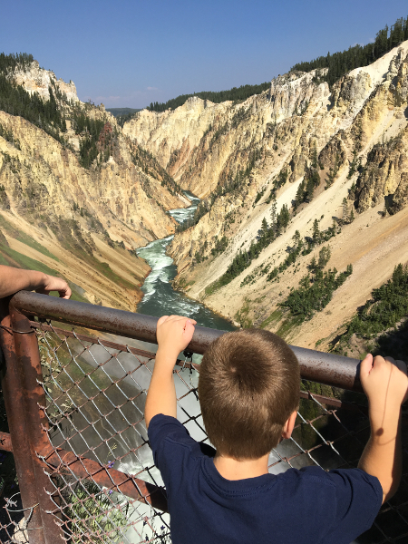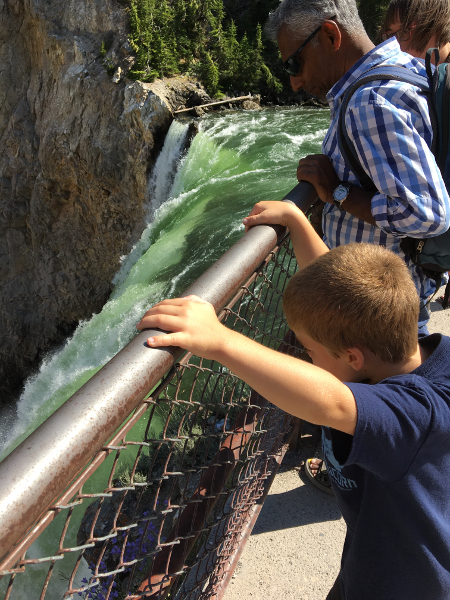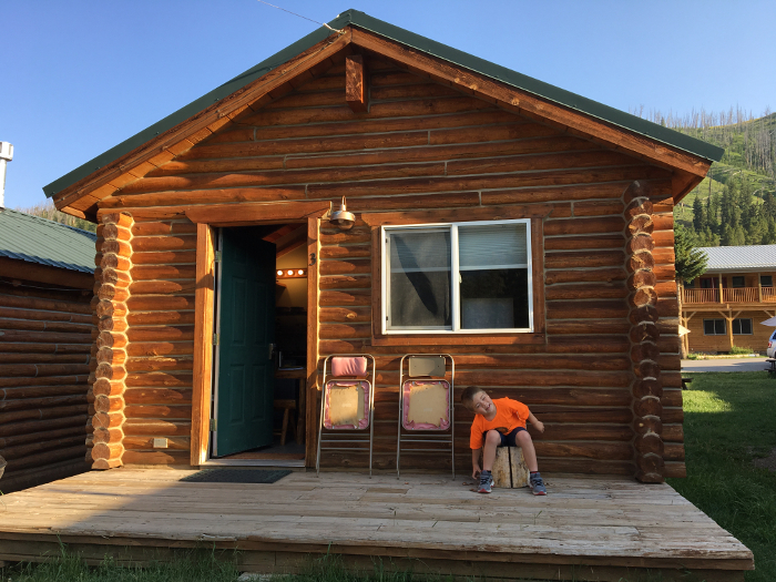 We stayed in Cooke City in a little cabin for the night, and then went back into the park. We saw some things, but there were so many people we couldn't find places to park at many of the waterfalls and geysers we passed, which was disappointing. So we saw some lesser visited parts of the park. And we did get lucky in a few places, like the canyon and the big waterfall. Daddy and I walked down - it was a little scary because there wasn't much to keep you on the hillside. We got back early to the cabin because we all needed a rest.