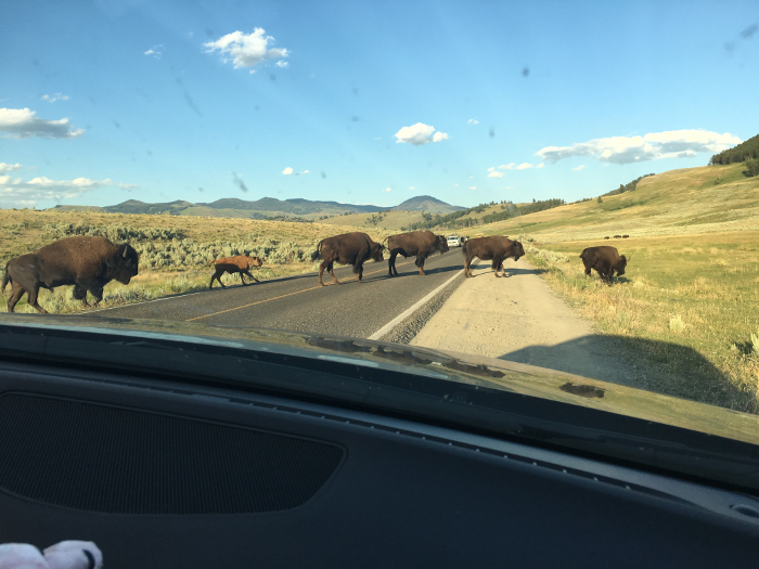We moved through Grand Teton and into Yellowstone as we had a long way to go to our cabin. We stopped to see the geysers - the main reason we added this leg of the trip. After that, we saw another black bear on the road to Cooke City, and a lot of bison in the Lamar Valley. We sat and watched them for about thirty minutes, and one of them almost rammed our car!