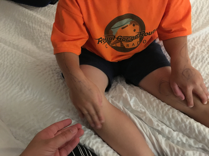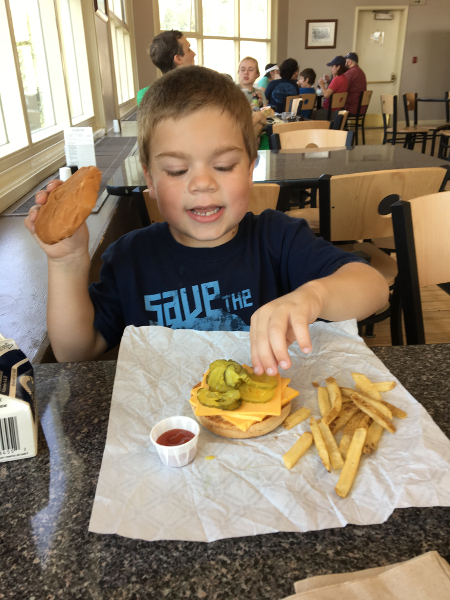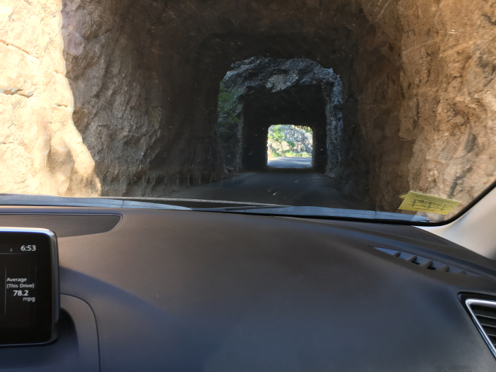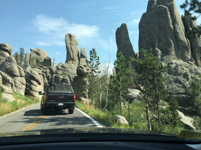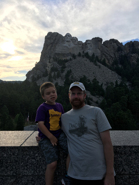 Friday morning was a short trip to Devil's Tower, then we drove south to come into the Black Hills on Highway 16 from Newcastle. Newcastle might just have the only burger joint in Wyoming that has a veggie burger on the menu - which was lucky for Daddy. From there we drove the Needles Highway, the Iron Mountain Road, and stopped at Mt. Rushmore. As it was getting dark, we went to our stopping point for the night: Uncle Gary and Aunt Nancy's house. Kaiden was there, and we had a little time to play before everyone was ready for bed.