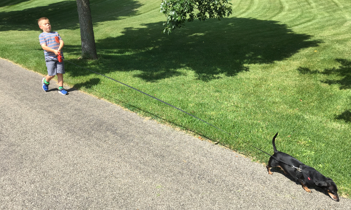 After the party we took Grandpa Kevin home and helped him walk the dogs. We watched some car shows for a while, too.