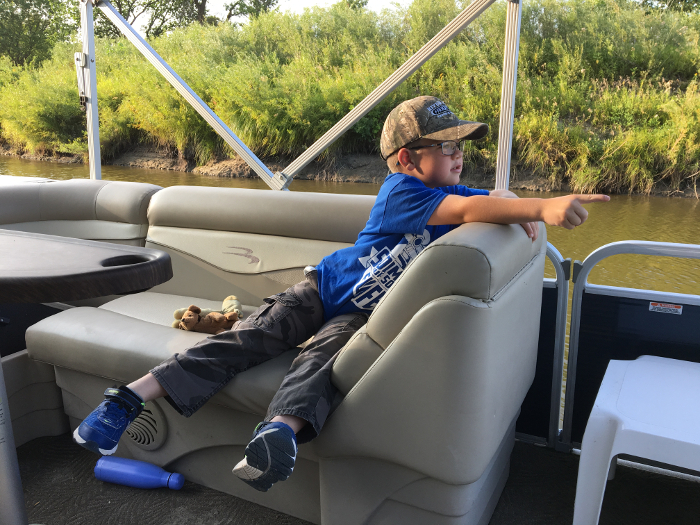Wednesday I went with Grandpa and Grandma to get Daddy so we could go on our trip the next day. And Thursday morning we packed up and picked up Great-grandma Darlene, and drove north all day. By the time we got there, said hi to Jenn, and unpacked, Bob was ready to give us a boat ride, which was a nice way to end the day.