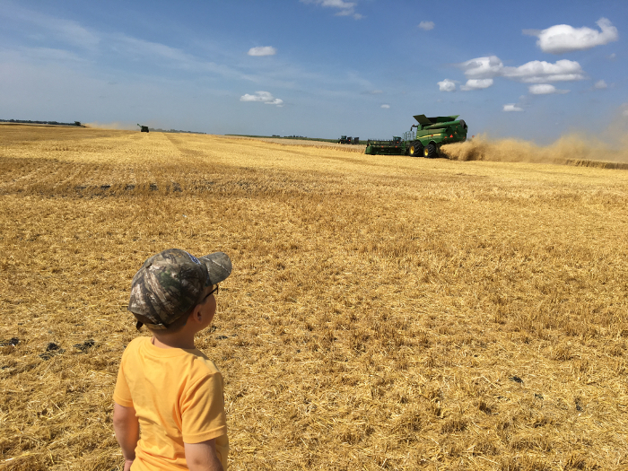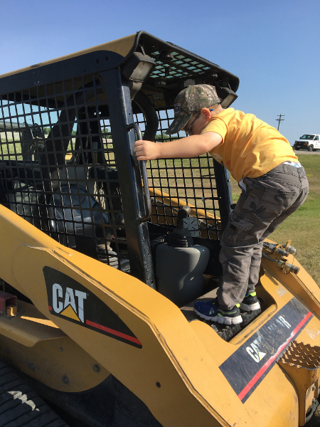 Saturday was a little gray and drizzly, so we didn't get to do any combining or truck driving. But I did get to ride on a bulldozer! And on Bob's trailer he tows with the lawnmower.