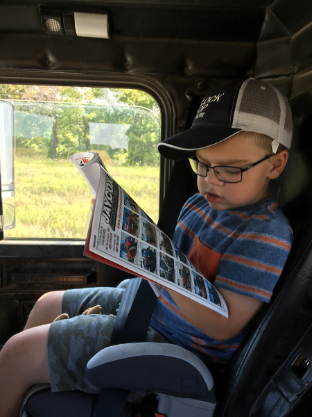 Unfortunately, our harvest time had to end. Thursday we drove home, dropped off Great-grandma Darlene, then Grandma Wynne, and went back to our house. I made it in time for my open house at school. I met my new teacher and talked to my kindergarten teacher, and saw a lot of my friends - I am excited to go back to school next week.