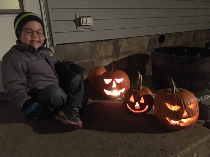 This week the weather was colder - winter is coming! Daddy and I raked some leaves and we lit my jack-o-lanterns.