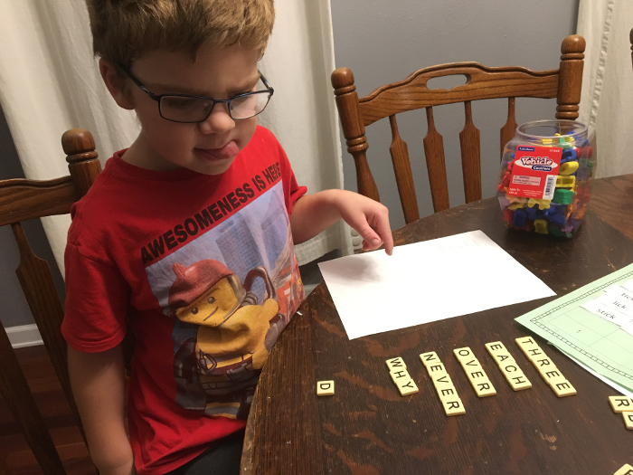 I did some homework this week as well - Daddy got out some letter tiles to practice my sight words.