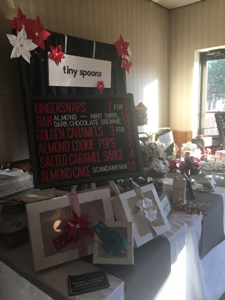 Saturday I went to help at the Tiny Spoons booth! We all wore our new shirts and Josh and Freya came down. Freya and I bought some slime and ran all over the civic center. Plus, we went to the Festival of Trees. I had a lot of fun, but we didn't sell much stuff. One of my jobs was to count the people who came to the booth.