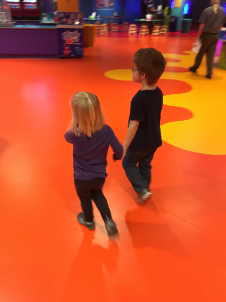 After the festival, Daddy and I rode the light rail with Josh and Freya so we would be out of the way while Mommy and Kara packed cookie boxes for the Tiny Spoons show on Sunday. We rode a bus, then the train, to the Mall. We went to the Crayola Experience, had some lunch, and played on a little truck for a while. Then we went back to the house for supper and we watched Rudolph the Red-nosed Reindeer.