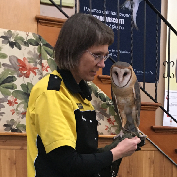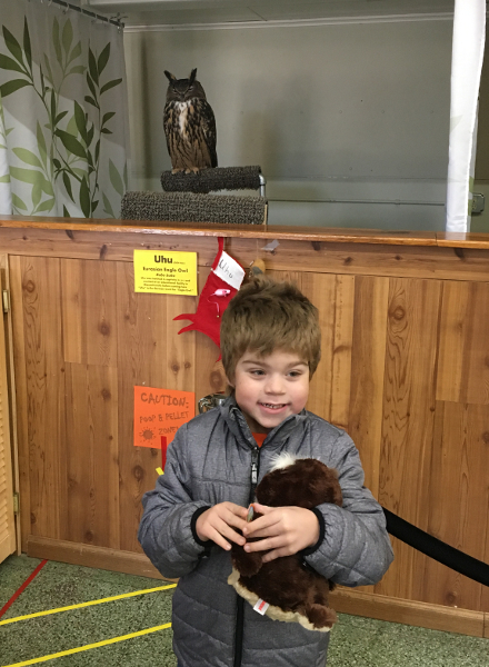 At the Owl Center, with Uhu, the Eurasian Eagle Owl.