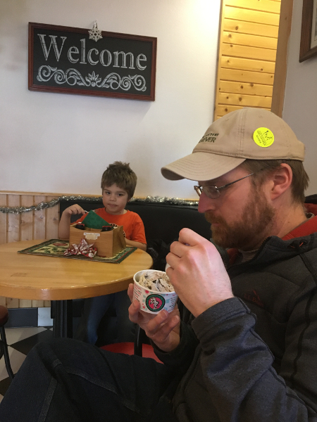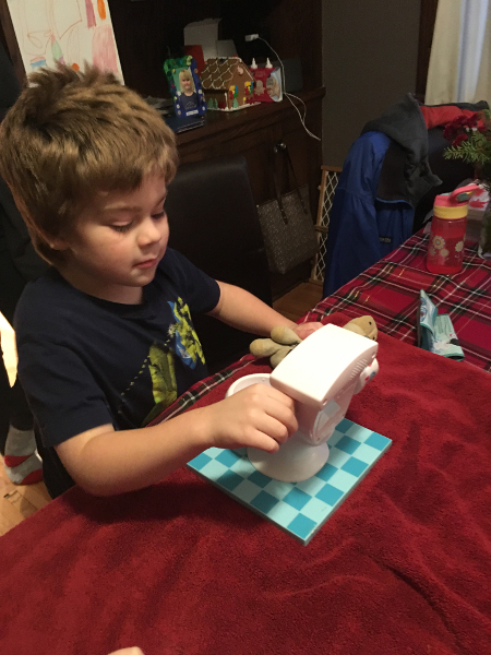 This week I was just waiting for Christmas. I did normal stuff, like going to school. And I went out for Grandpa Kevin's birthday. And I helped with people picking up cookie boxes. And gave Sawyer his birthday present (then I was sick at his house after supper). No school on Friday so I hung out with Mom. Saturday we went shopping and to the Owl Center. And Sunday Freya was over being sick, so we went to her house to celebrate and open presents.