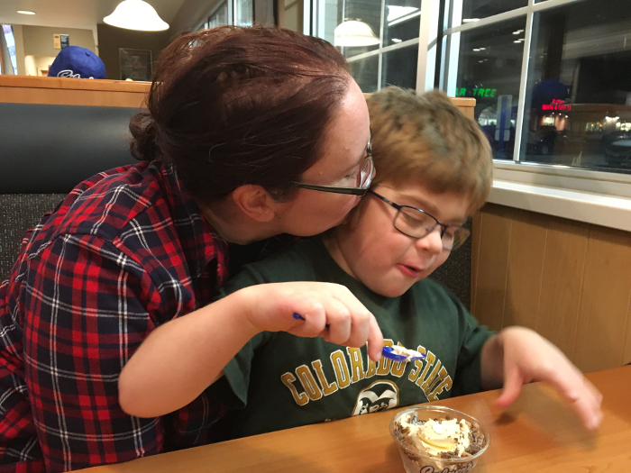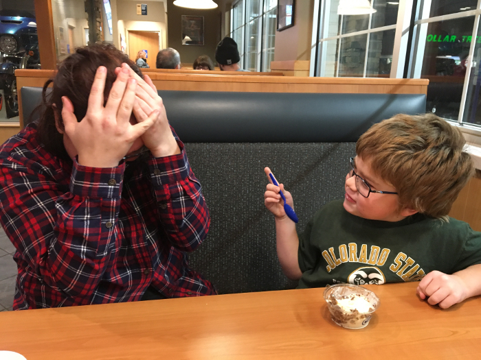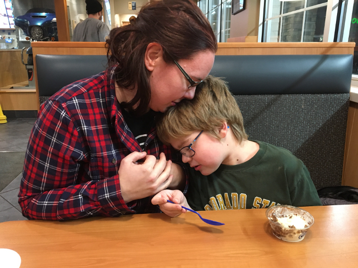 Mommy trying to get some ice cream.
