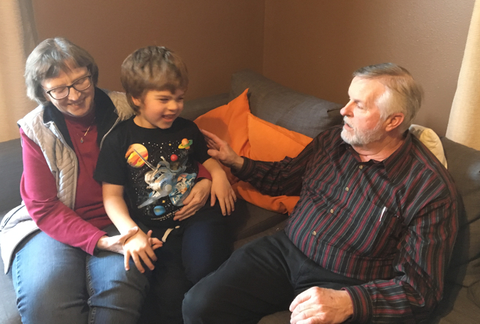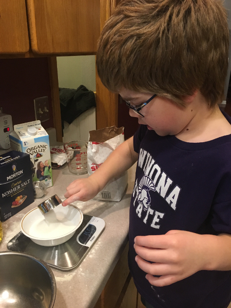 This week was my actual birthday on Monday - and we had a snow day! Daddy stayed home with me and we played school and I got to watch Star Wars: A New Hope! And when Mommy came home we made blueberry muffins from scratch!