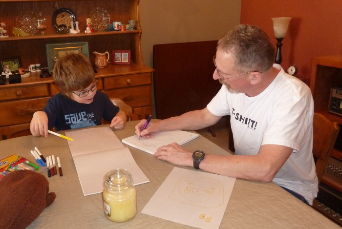 Drawing with Grandpa Kevin.