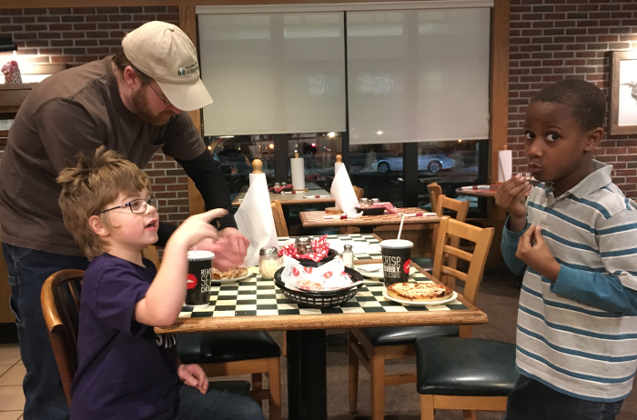 Sunday Mommy did homework, and Daddy and I went to visit Donald. Then Grandpa Al and Grandma Wynne came over for a little while to visit.