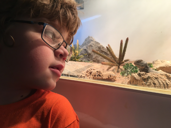 After the fun was over, we had to move a lot of stuff back to Mommy's lab and back to our house. While we were at the lab, Gizmo was out. Gizmo is a uromastyx, and he is usually really shy. But he seems to like me and Daddy because he doesn't hide when we stop to see him.