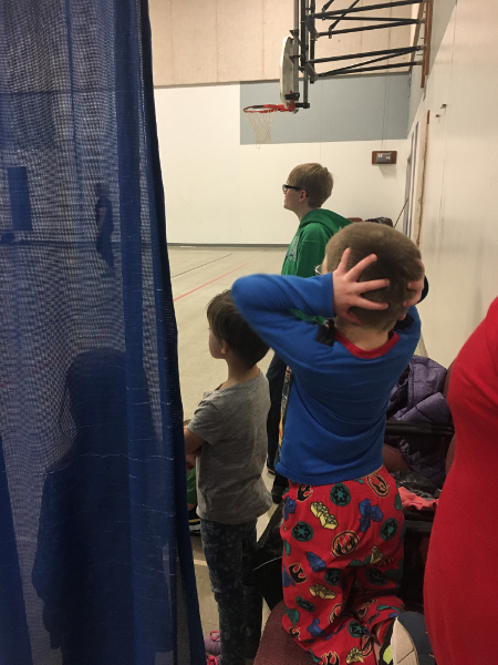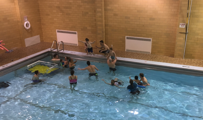 And swimming lessons started again. This time they are on campus, not at the Y. And the seating is way up high, not right down by the pool, as you might guess from the pictures.