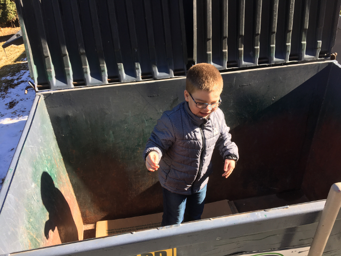 I also helped Daddy at work. We pulled some books and I got to help get rid of them by climbing into the recycling dumpster.