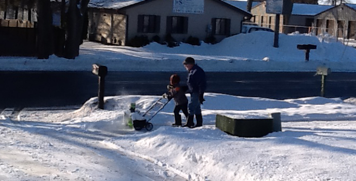 On the weekend I went to Grandpa Al and Grandma Wynne's house. The most fun thing I did was run Grandpa's electric snow thrower. And I also got two pair of new shoes and some new toy trains.