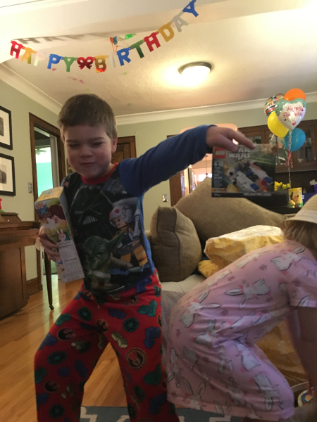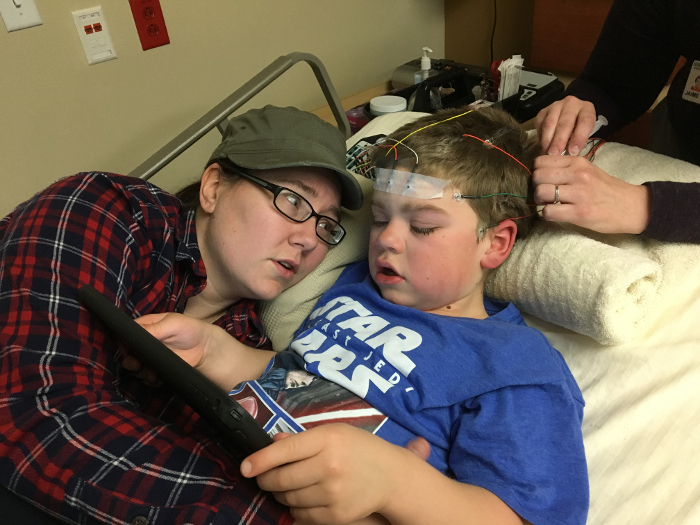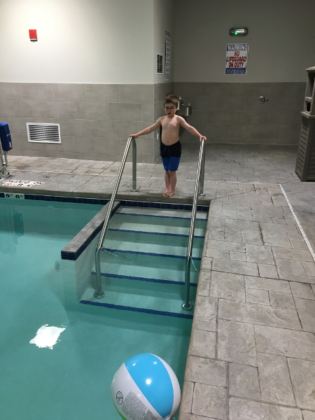 Thursday after school we went to stay in a hotel. I had to stay up all night for my EEG. Daddy stayed up with me and we built LEGO, went swimming, and watched Star Wars: The Last Jedi. We also explored all over the hospital.