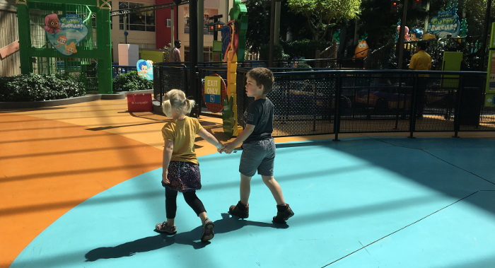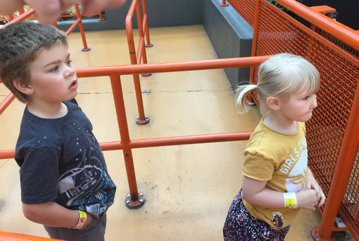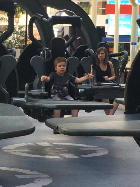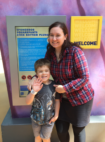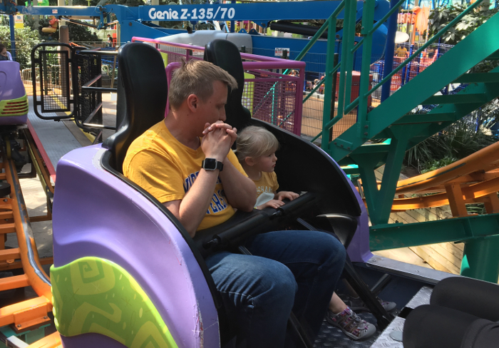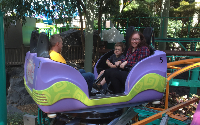 Me and Mommy getting ready to go on the upside-down roller coaster!