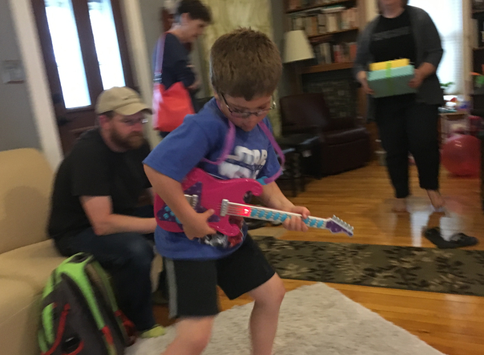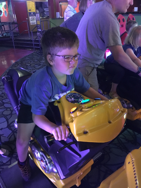 Saturday morning we went to the arcade and played lots of games. And we cashed in our points for prizes - me and Daddy got some Nerf dart guns. After the arcade we had lunch, rested for a while, and then went to Theo's first birthday party.