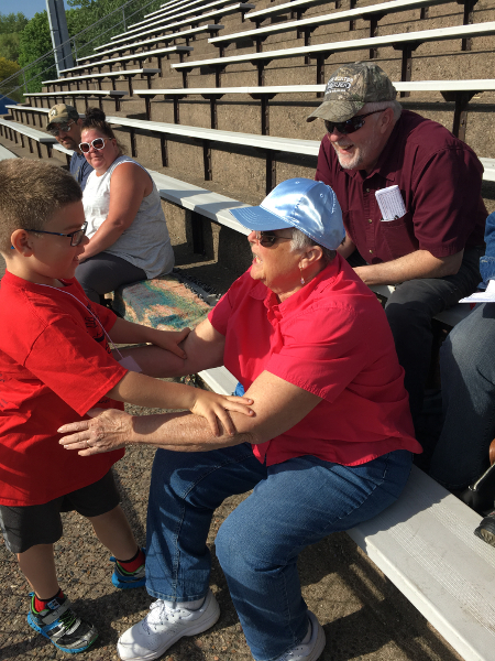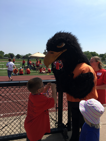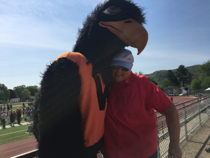 Diane getting a hug from Herky.